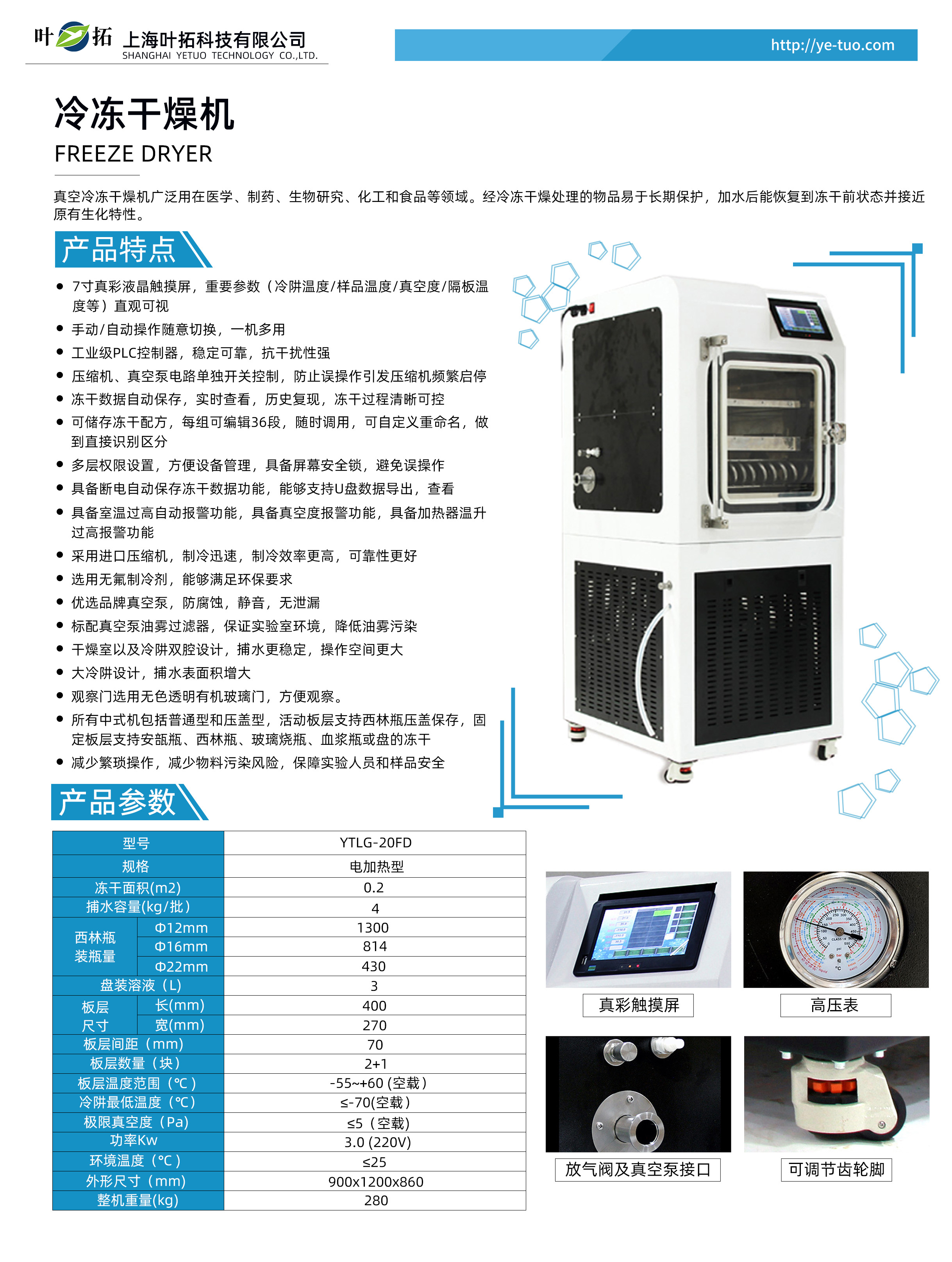 上海葉拓 YTLG-20FD 中式真空冷凍干燥機(jī)